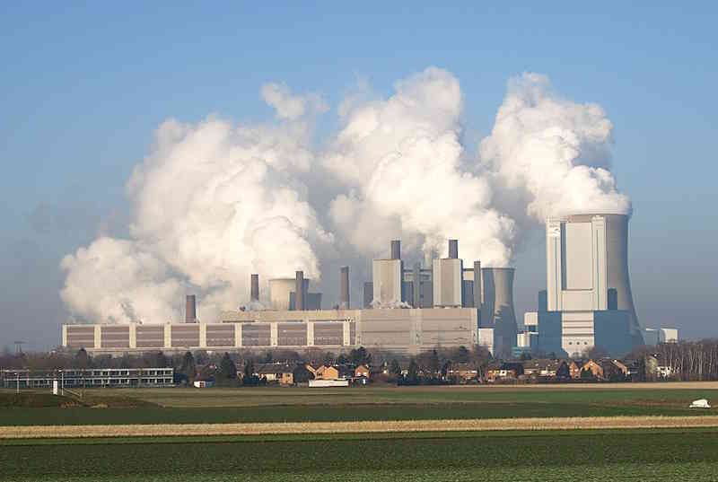 Der Redner antwortet mit dem Bild eines Kohlekraftwerks und sagt: „Noch nie hat ein Vorstandsvorsitzender eines Energiekonzern für sich selbst als Spielzeug ein Kohlekraftwerk gebaut. Es war immer unser aller Bedarf, unser gemeinsamer Stromkonsum, der ihn dazu veranlasst hat.\“